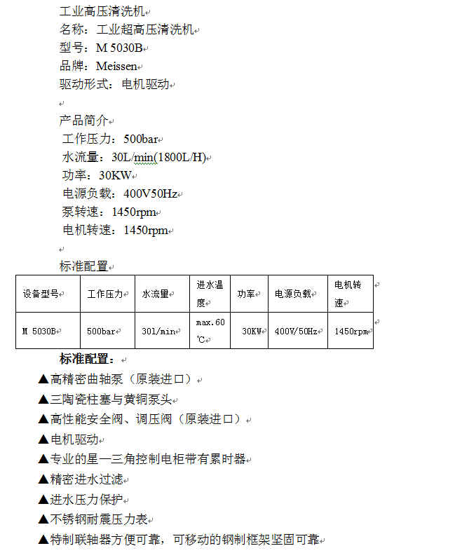 產(chǎn)品名稱:工業(yè)級(jí)超高壓清洗機(jī)M5030B
